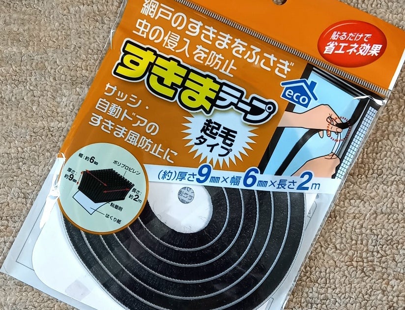 セリアの隙間テープ(防水用、110円)を使って、キッチンペーパーを片手で簡単に切ることができます。